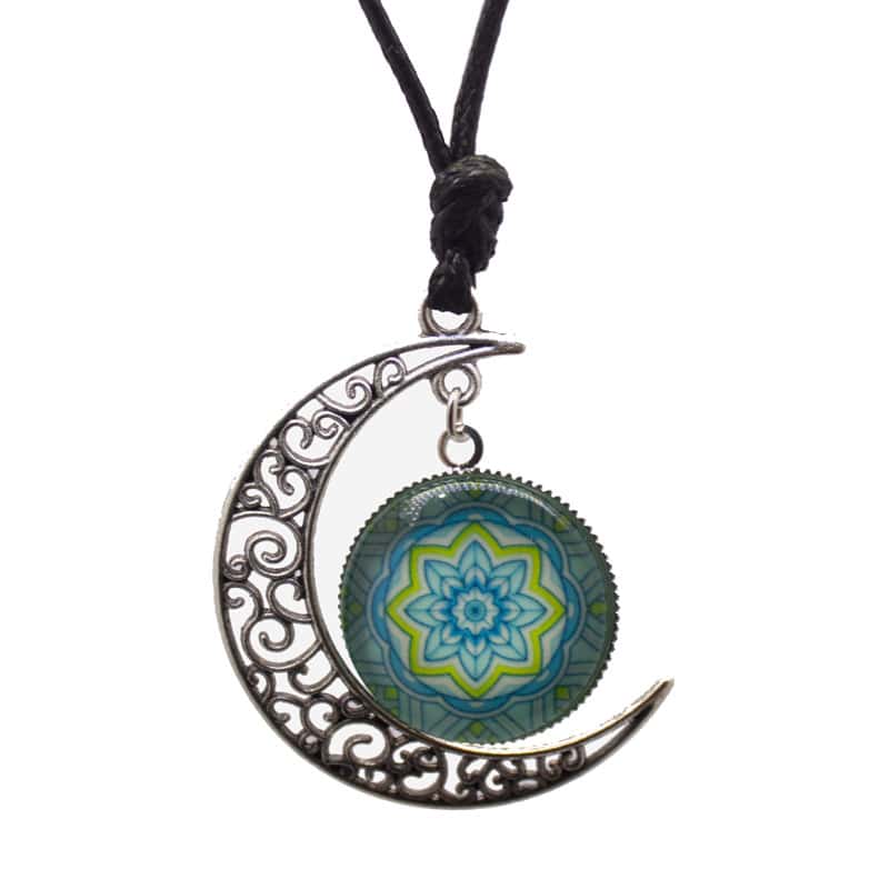 Colar regulável de lua e mandala fotoluminescente